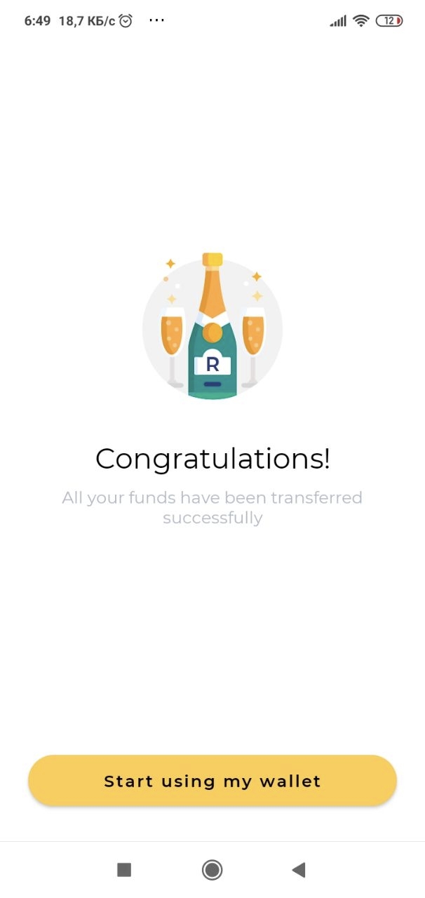 Subsequent steps are performed automatically. Just wait until the generation of all signatures is complete and the congratulation screen appears. Since ABC keys are in no way related to XYZ keys, please note that the addresses of your wallets have also changed, so warn your counterparties against sending funds to your old addresses.