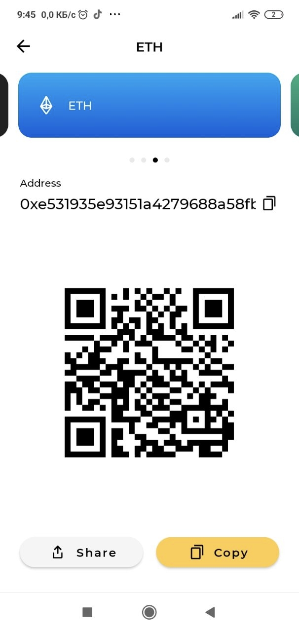 To receive cryptocurrency, select Receive on the card screen, and tell the sender your wallet address.