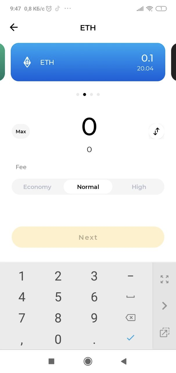 On the first screen, enter the amount to transfer. For convenience, you can specify the amount as two values: either in the selected cryptocurrency or as its currency equivalent.