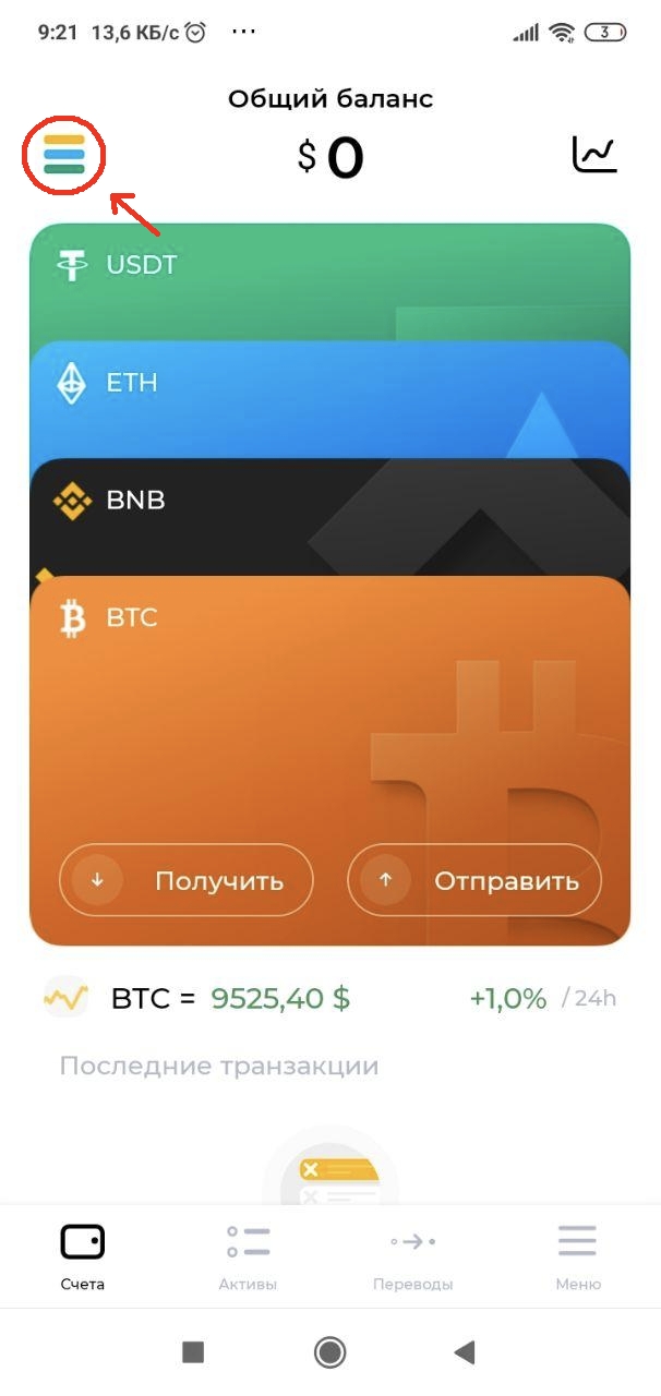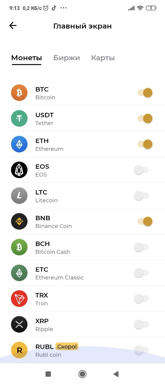 Включение и отключение криптовалют